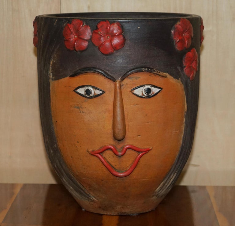 Pair Of 1960 S Vintage Mexican Folk Art Terracotta Head Face Planter Plant Pots For Sale At 1stdibs