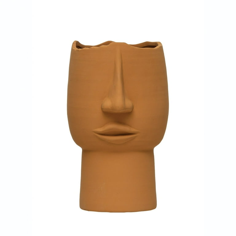 High Face Planter 9 6 Inch Terracotta Modern Ceramic Vase Human Succulent Head Planter Indoor Clay Vase Bonsai Container Drainage Holes Saucer 9 6 Inch Large Amazon De Garden