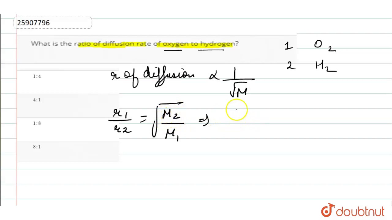 What Is The Ratio Of Diffusion Rate Of Oxygen To Hydrogen Youtube